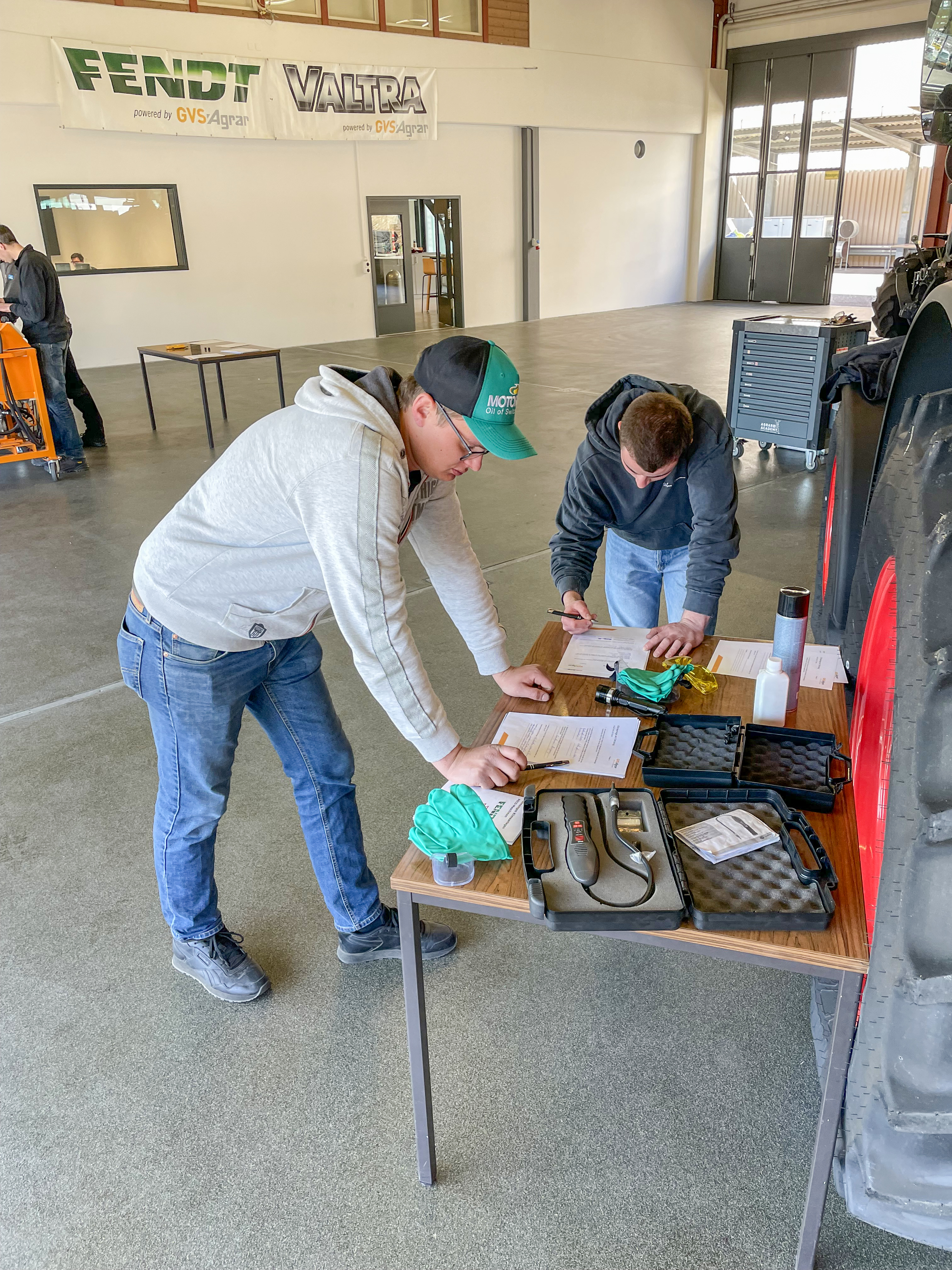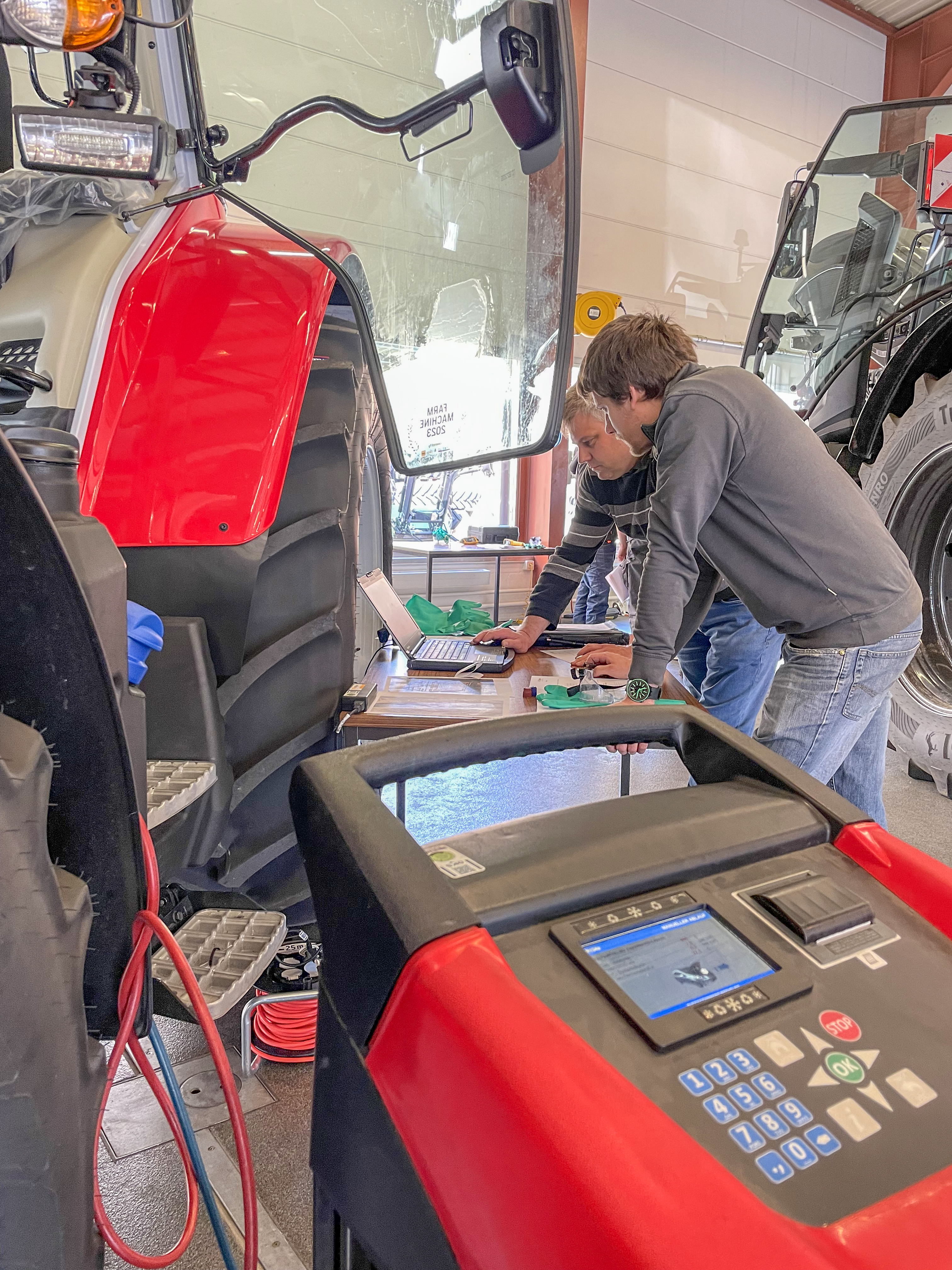 La climatisation doit être entretenue. Il existe pour cela des certificats de compétence spéciaux. De plus, nous proposons à nos partenaires une journée annuelle de la climatisation, au cours de laquelle ils peuvent rafraîchir leurs connaissances directement sur les machines avec nos spécialistes Tobi Schalch et Rafael Mühlemann, toutes marques confondues. Nous garantissons ainsi qu'à l'avenir également, un climat agréable règne de manière fiable dans tous les tracteurs dont nous et nos partenaires nous occupons.