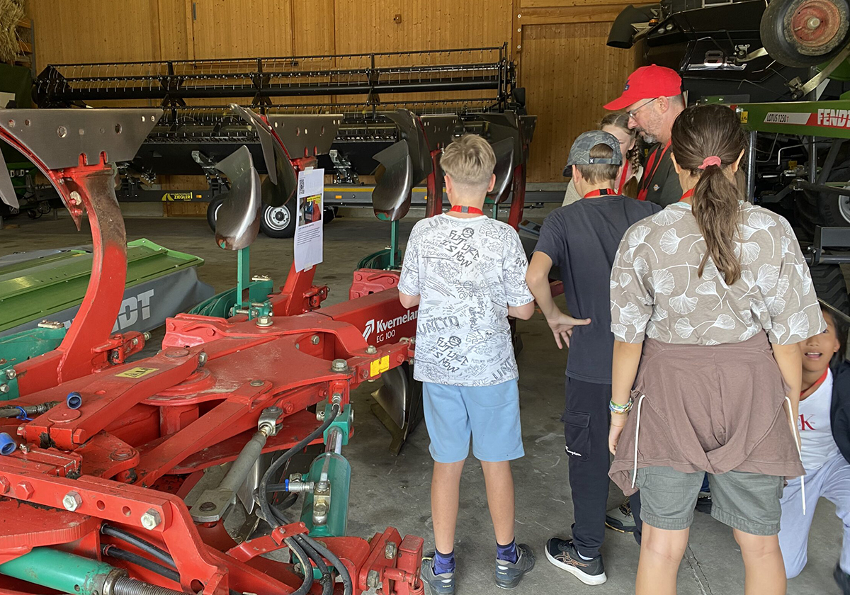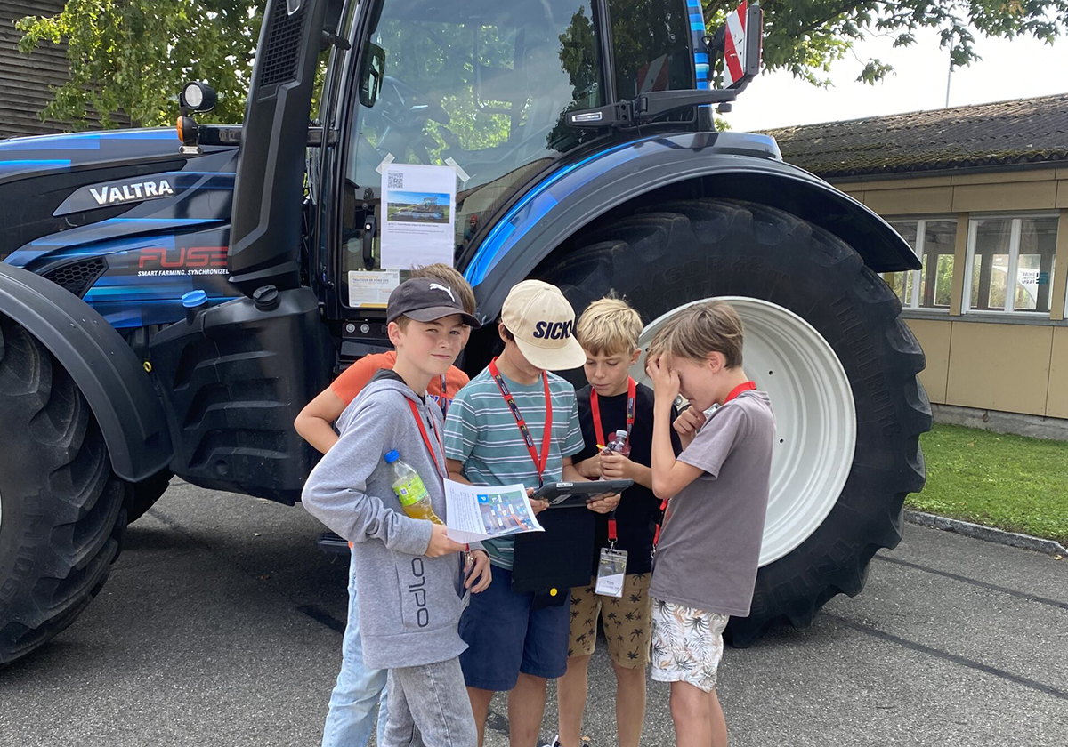 Nach der ausführlichen Rundschau ging es dann nach draussen aufs Areal der Farm, wo die ganze Schar in Sechs Gruppen eingeteilt wurden. Im Turnus konnten sie ebenso viele spannende Posten besuchen und mit Hilfe von IPads die Actionbounds abarbeiten, wobei sehr viel neues und spannendes gesehen und gelernt wurde. Die Posten hatten Themen wie Robotik, Isobus, BoomControl oder den Melkroboter im Fokus, was in dieser Form viele faszinierende Eindrücke hinterliess – gerade im Zusammenhang mit Digitalisierung und Nachhaltigkeit gab es einiges zu staunen.