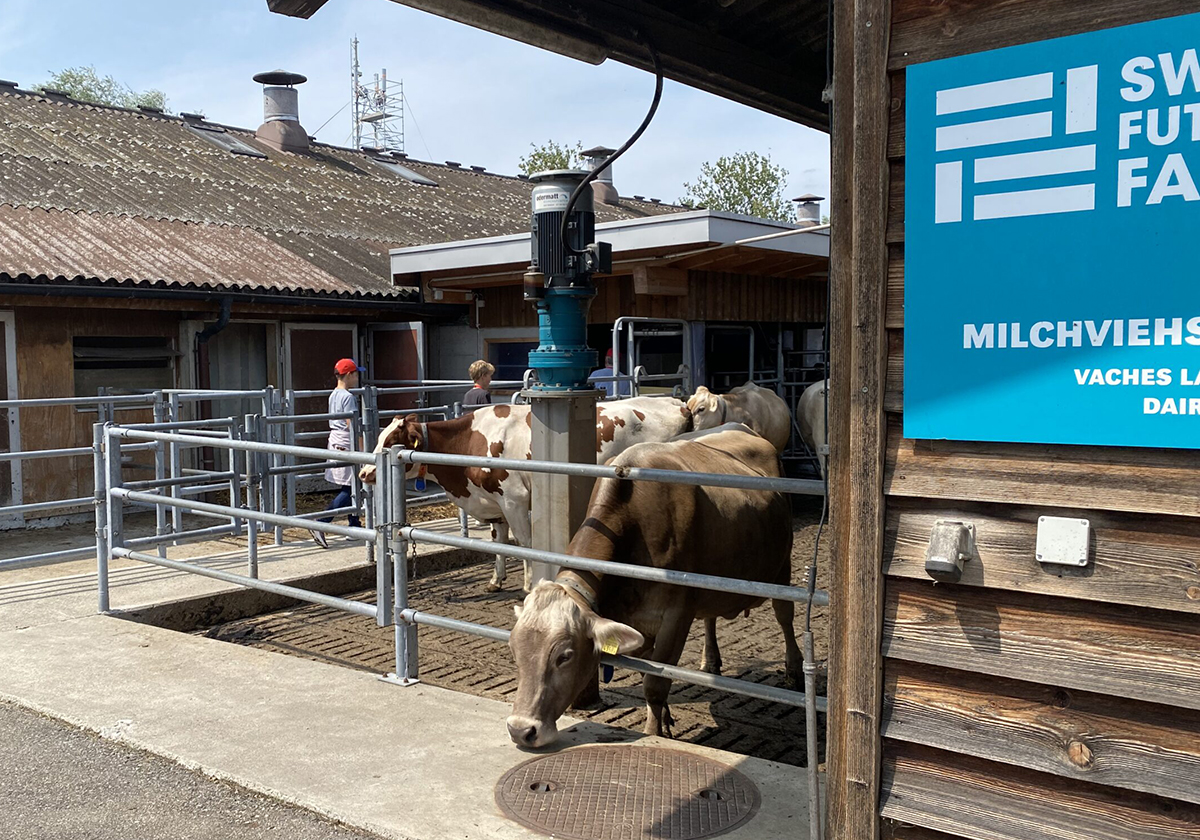 Nach der Ankunft und der Begrüssung gab es eine fundierte Einführung. Diverse Fakten weckten das Interesse der jungen Leute und deren Begleiter. Die SFF bewirtschaftet 81 ha, der Durchschnitt in der Schweiz liegt bei 21 ha, in Russland beträgt dieser 6000 ha. Ein ähnliches Bild zeigt sich bei den Tieren. Der Schweizer Durchschnitt bei den Kühen liegt bei 29 Tieren pro Betrieb. Die SFF verfügt über 85 Milchkühe, in den USA liegt dieser bei 200 Tieren.